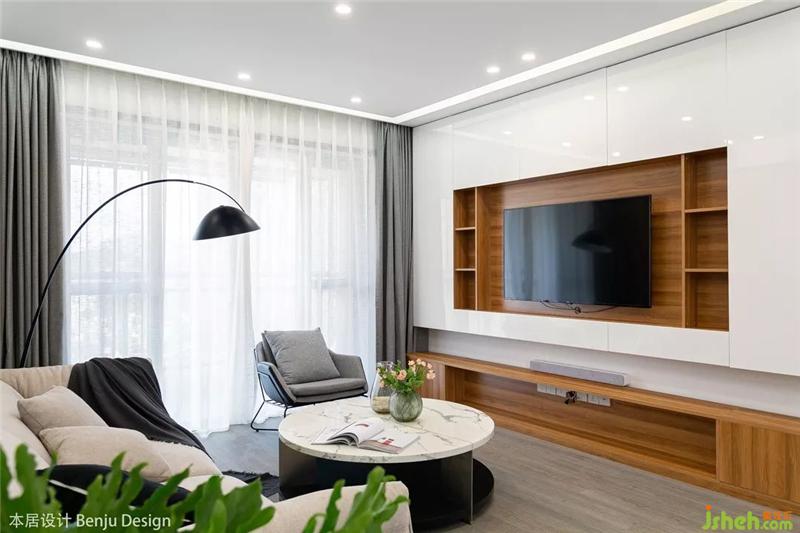 屋主要求整屋是簡約暖色調(diào)的風(fēng)格,同時(shí)又具備收納的功能,因此我們將電視的背景墻設(shè)計(jì)收納柜,白色+原木色,簡潔而又富有生活氣息。室內(nèi)設(shè)計(jì)師
