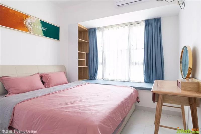 飄窗上定制儲(chǔ)物柜,睡前閱讀的書籍就有地方收納啦。飄窗和收納柜一體式,將空間利用到最大化。