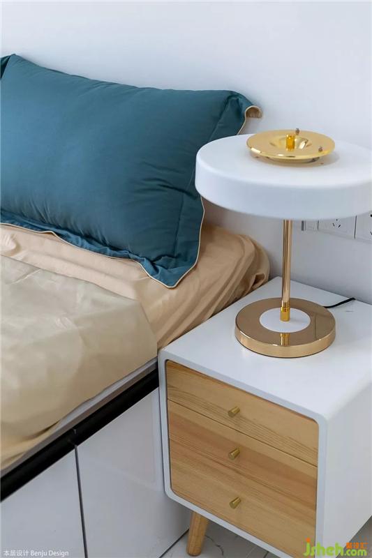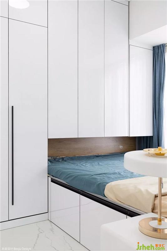 次臥給爺爺奶奶使用,面積較小,因此采用榻榻米的設(shè)計(jì),利用了飄窗60公分的寬度,榻榻米與壁柜連接。室內(nèi)設(shè)計(jì)師