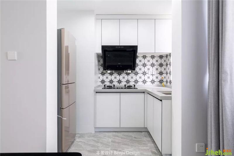 業(yè)主擔(dān)心油煙問題但又喜歡開放式的廚房,所以我們采用了半開放式的設(shè)計(jì),讓廚房空間顯得不那么局促。室內(nèi)設(shè)計(jì)師