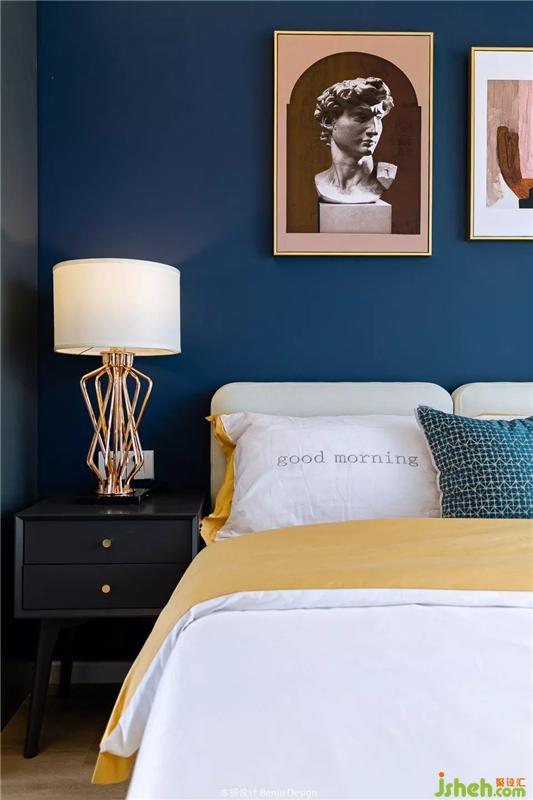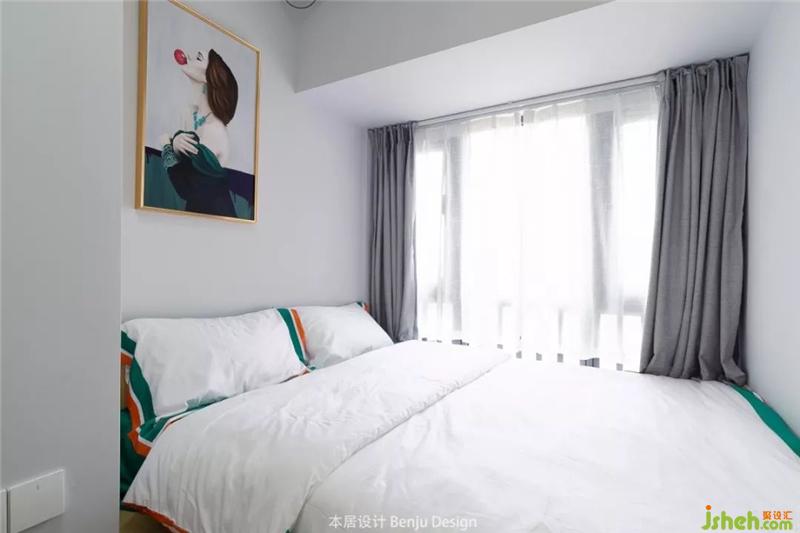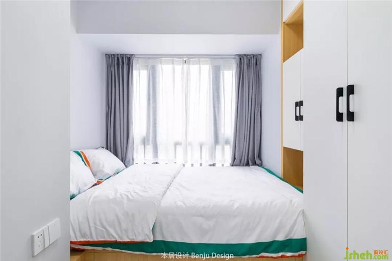 次臥床頭旁的墻向內(nèi)縮進,給主臥的衣柜騰出了空間。室內(nèi)設(shè)計師