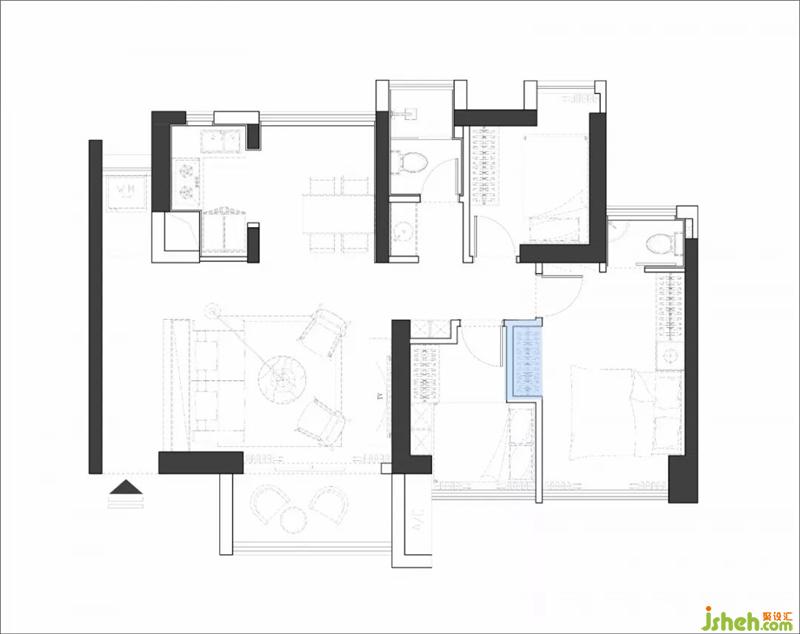 依據(jù)業(yè)主要求,這間房空置,留作倉庫使用,增加收納空間。室內(nèi)設(shè)計師