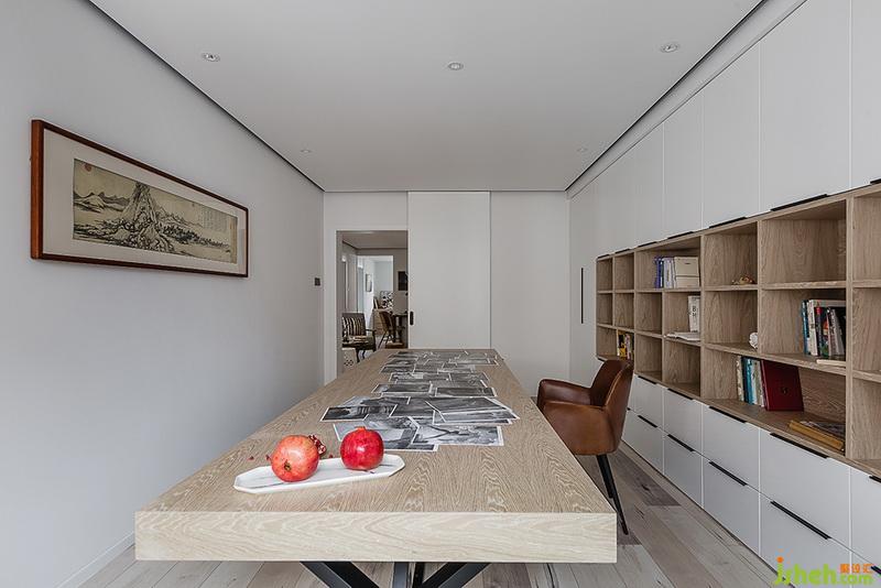 3米的長桌上鋪滿了但丁的《神曲》,墻面上掛了屋主朋友送的山水畫。這么長桌子現(xiàn)場做的面貼的KD板腳是網(wǎng)上買的。#設(shè)計(jì)公司#