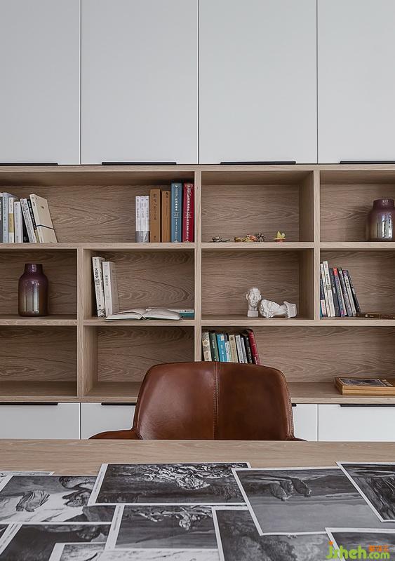到頂?shù)囊崎T把書房和客廳分隔開來。