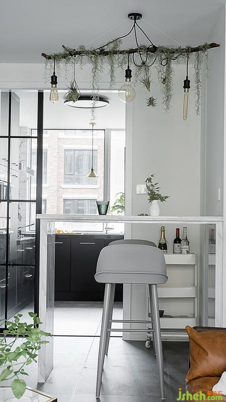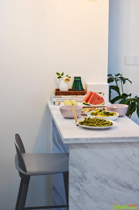 吧臺(tái)是木框架結(jié)構(gòu),爵士白大理石覆蓋面,淡雅的氣質(zhì)總是在不經(jīng)意間流出。