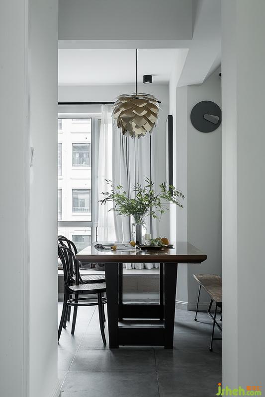 書(shū)柜和餐桌室內(nèi)設(shè)計(jì)師大膽用色選用胡桃木制作,胡桃木木紋精巧別致,強(qiáng)化了空間感,展現(xiàn)出空間低調(diào)的精致。