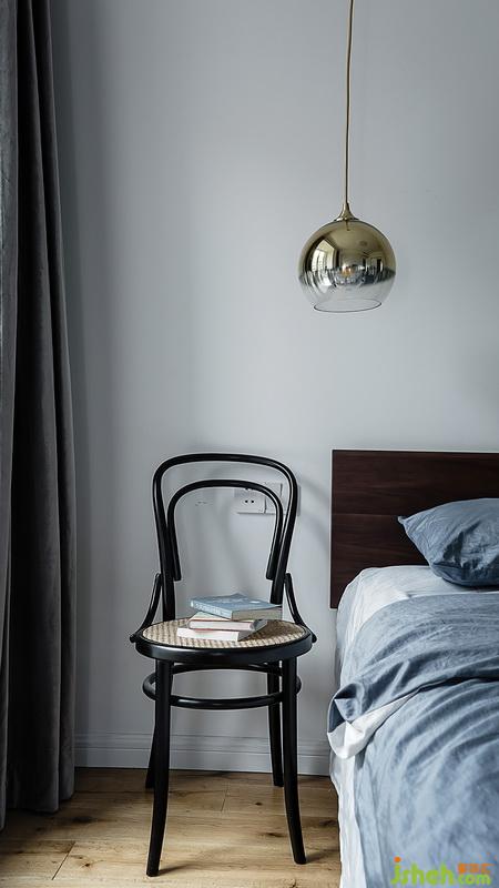黑色鐵椅作為床頭也別有一番風(fēng)味,鐵椅是可移動(dòng)的,靈活性很強(qiáng),美觀并實(shí)用。