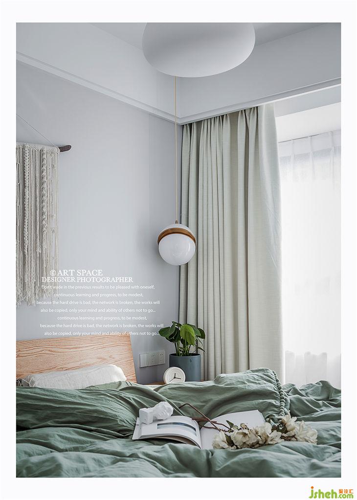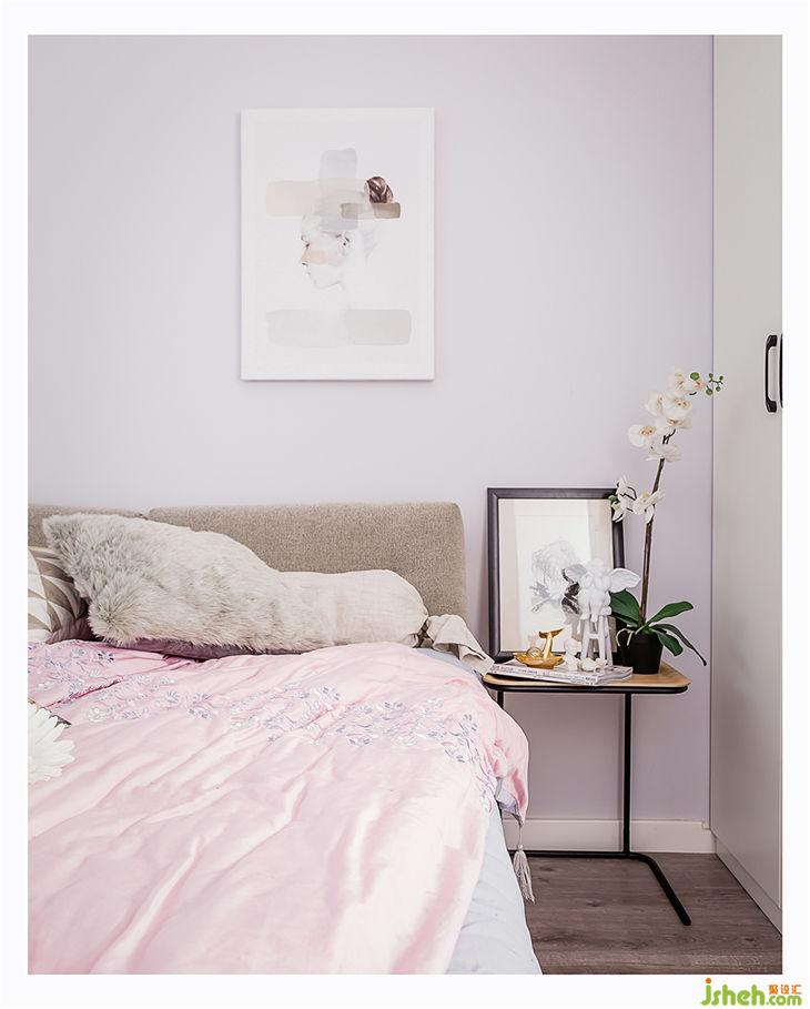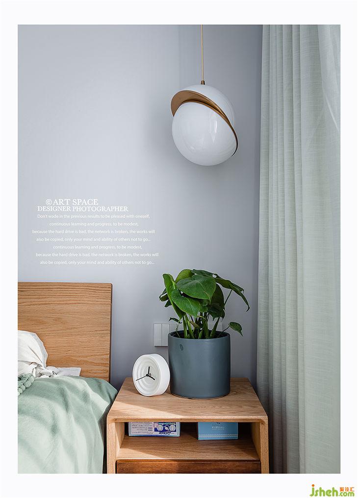 ▲床頭柜是下面抽屜上面敞開的款式,每天要用的放在敞開部分,不至于桌面太亂。床頭的掛飾被我老公稱之為拖把,唯一支持我的只有我親媽以及設計師大大~