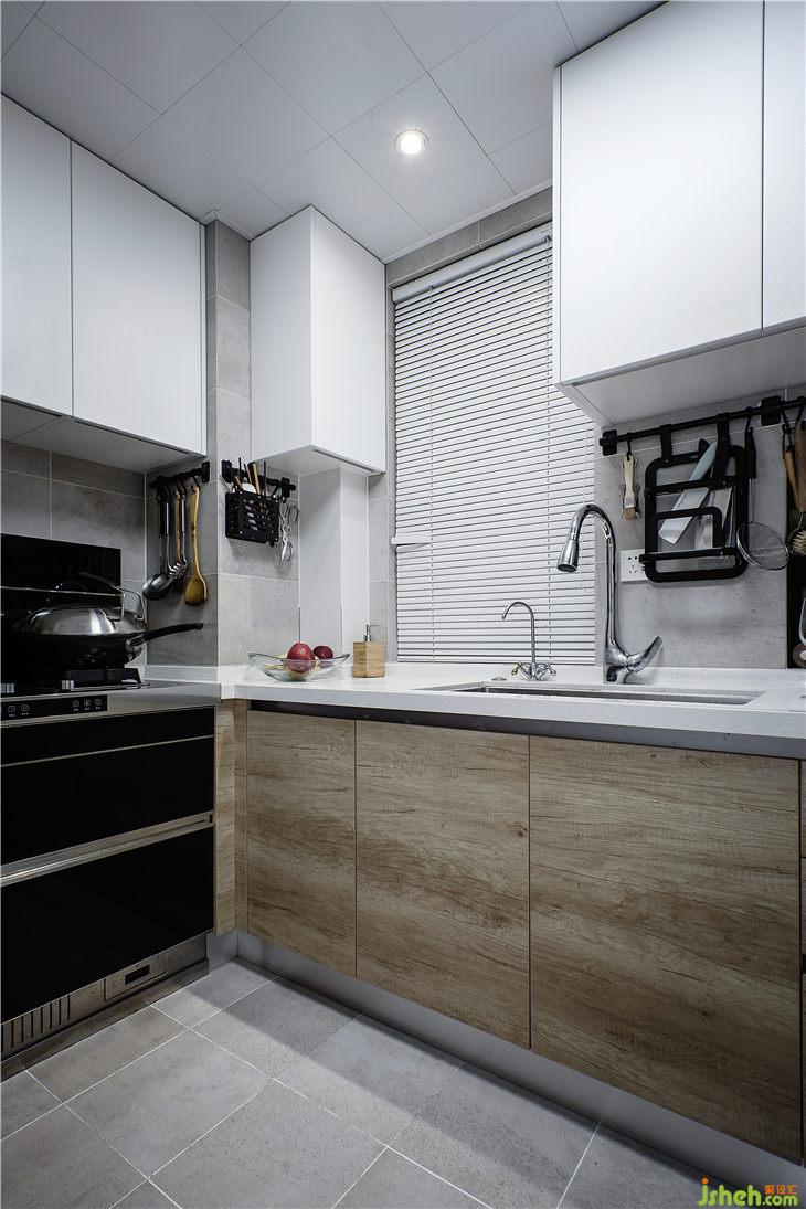 廚房比較小,因?yàn)閼糁飨胍粋€(gè)微波爐但又不想占用臺(tái)面功能,設(shè)計(jì)師考慮到衛(wèi)生間飄窗空間有所浪費(fèi),在其挖洞放入微波爐。更好地提高了廚房的實(shí)用空間。
