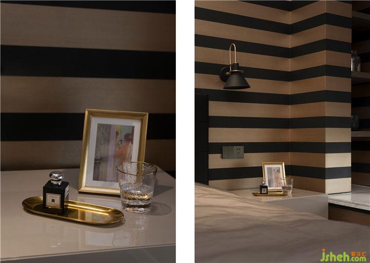 因為屋主比較喜歡這樣拉伸空間感的條紋,所以在臥室都采用的是條紋壁紙。