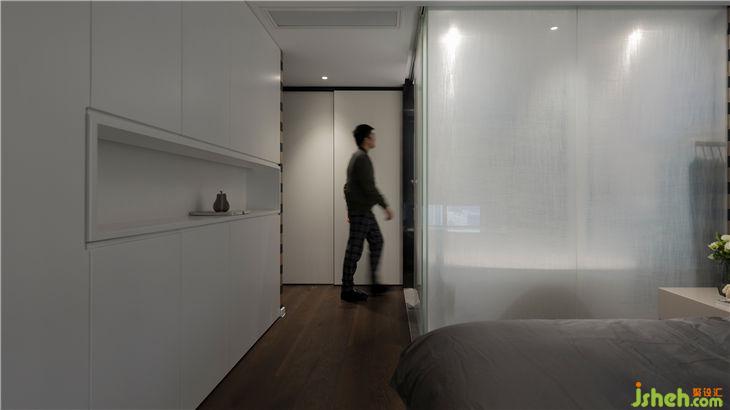 主臥室的窗簾考慮到如果加遮陽布又做布和莎會整體很多,感覺飄窗上堆滿了窗簾,就采用深色蜂窩簾,優(yōu)點是能遮掩的同時又很輕薄感。同時把原客廳電視位置外擴(kuò),給主臥室增加一排儲存柜。