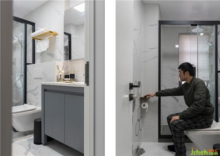 淋浴房左邊根據(jù)原管道距離做個(gè)小的壁龕,放置些沐浴用品。