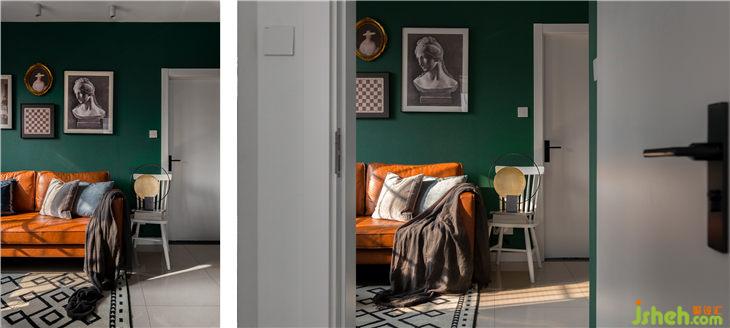原先電視背景墻后面是護墻板,因連帶著主臥室的柜子一體的,若拆除掉成本比較大,于是讓木工將表面護墻板附著一層石膏板后貼的墻紙。