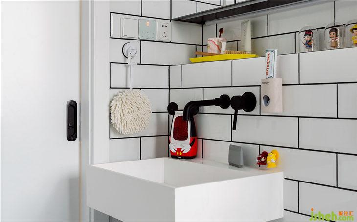 衛(wèi)生間是采用了經(jīng)典的黑白搭配。