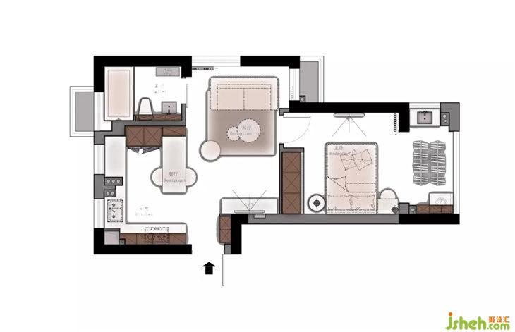 3. 把主臥和客廳之間的墻往客廳移動了一部分,滿足主臥的衣物儲藏收納需求