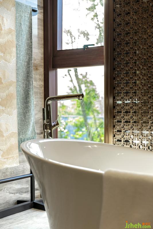 套房的設(shè)計雅靜大方,高至天花的方格木屏風構(gòu)架樸實,木版雕刻的山水畫作大氣凜然,整個空間在素雅的色調(diào)中透著風雅尊貴的氣息。