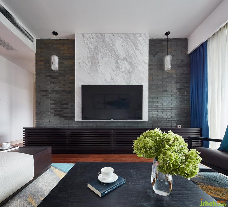 端莊雅致的客廳中,黑、白、灰、藍(lán)四大主色系奠定空間基調(diào),中式元素與現(xiàn)代材質(zhì)巧妙兼柔,對(duì)稱(chēng)布局,形成一派現(xiàn)代中式的端莊豐華。