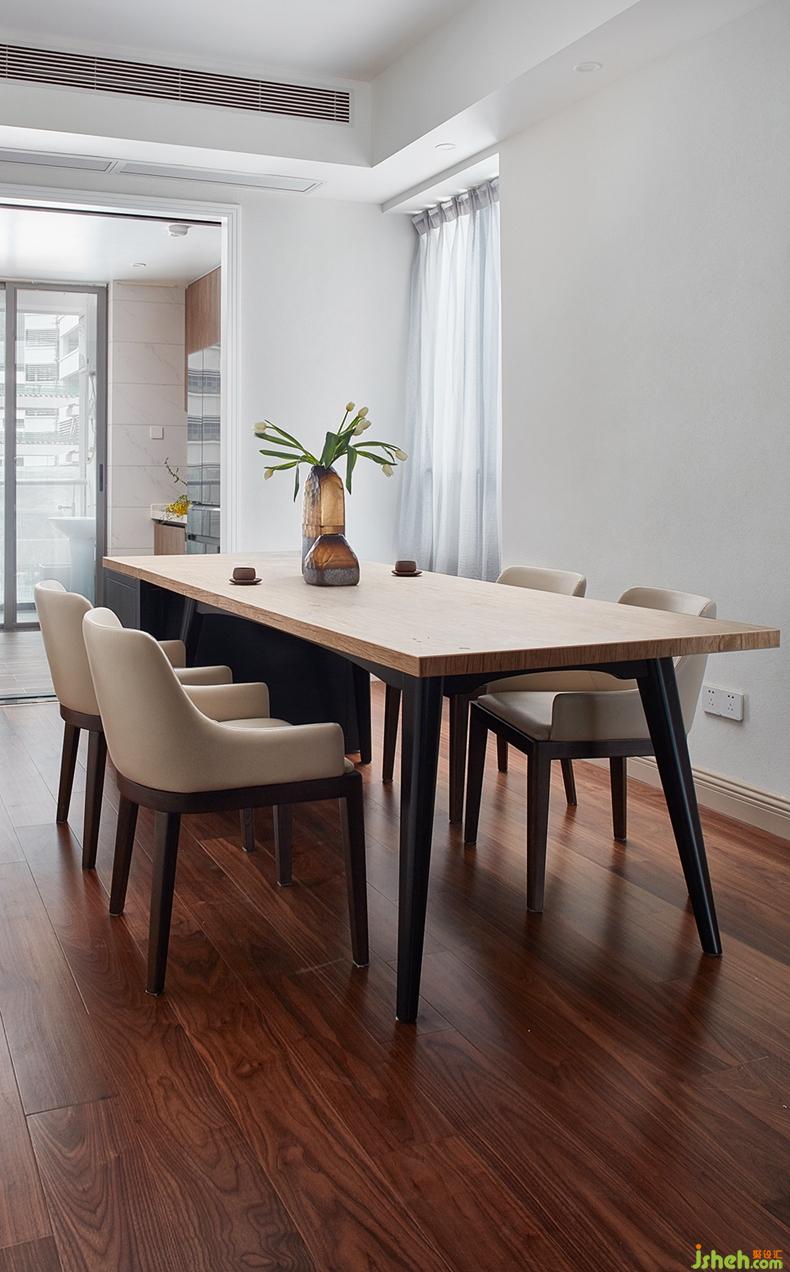 餐廳的總體布局對(duì)稱(chēng)均衡,線條簡(jiǎn)潔明朗,用色淡雅含蓄,設(shè)計(jì)師將空間功能性放大呈現(xiàn),細(xì)節(jié)上以簡(jiǎn)約之物加以雕琢,以此傳遞一種“少即是多”的生活理念。室內(nèi)設(shè)計(jì)師