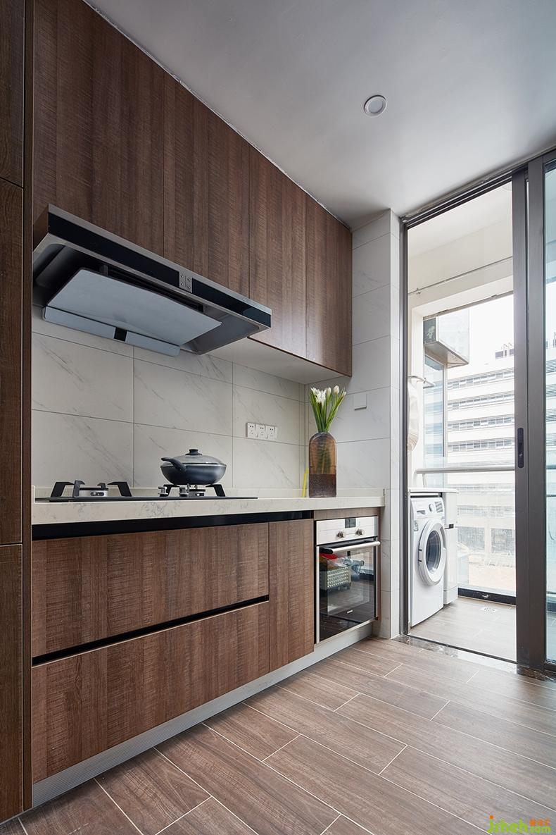 廚房選用一字型櫥柜,直線式的結(jié)構(gòu)簡(jiǎn)單明了,為屋外光線“讓道”,使得室內(nèi)空間通透明亮。設(shè)計(jì)師為廚房預(yù)留出了足夠的活動(dòng)空間,三兩人在廚房同時(shí)烹飪亦不會(huì)顯得擁擠。室內(nèi)設(shè)計(jì)師