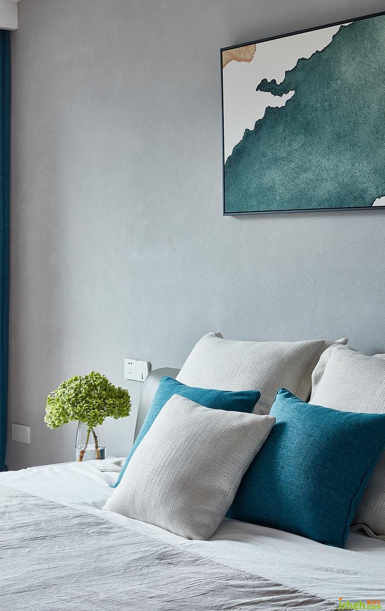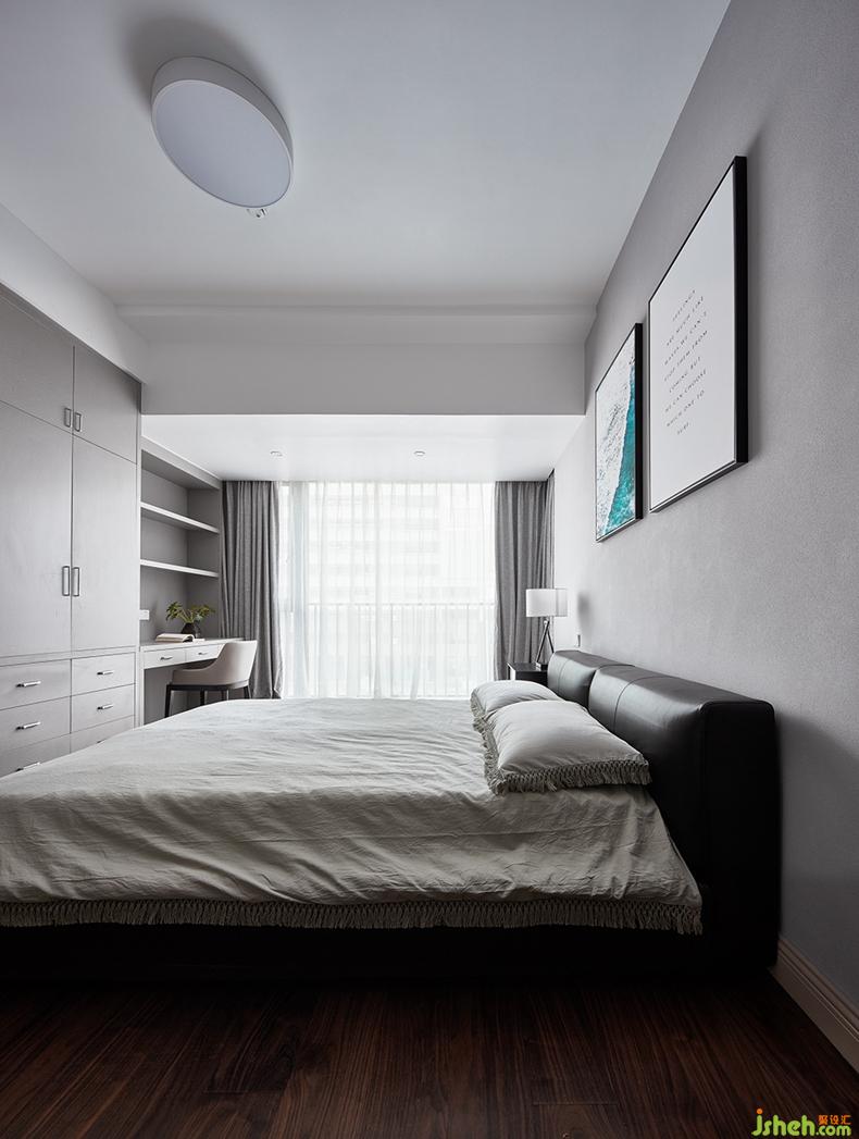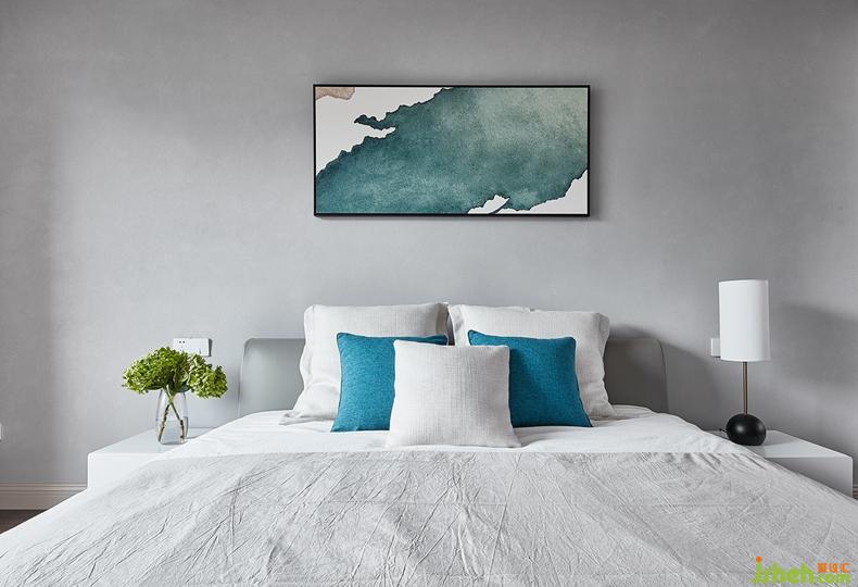 墻面做的灰泥一眼看去有一種水泥墻的感覺,室內(nèi)設(shè)計師以畫之韻和棉麻材質(zhì)固有的溫暖特質(zhì)勻和墻面的冰冷感,讓原來頗具冷感的它也成為宜居主臥的有機部分。