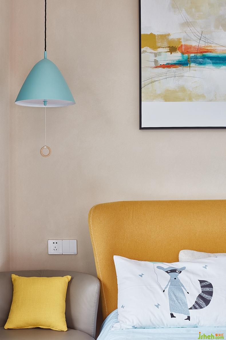 兒童房的色盤主調(diào)是青春與明亮,明黃提亮空間,天藍舒緩視覺,深藍提升格調(diào)——空間內(nèi)所用顏色最終全數(shù)飛入畫框中,旋成一幅明朗的抽象畫,每個星光墜落的夜晚,都落成色彩斑斕的夢。