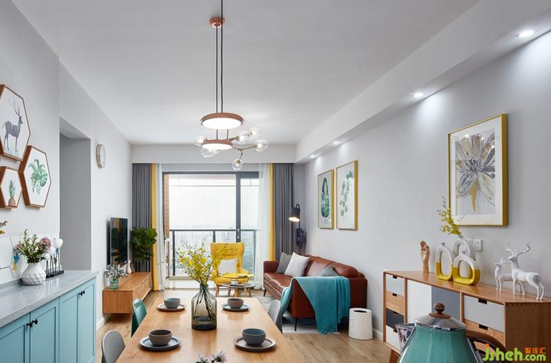 設(shè)計(jì)初期,室內(nèi)設(shè)計(jì)師就將這套房子的風(fēng)格定義為清新北歐,以含蓄柔和的淺灰色作為空間打底色,綴以高飽和度的黃色、綠色與湖藍(lán)色,同時(shí)以溫潤(rùn)的原木色柔和整體空間視覺(jué)感,打造出舒適大氣的暖心一宅。