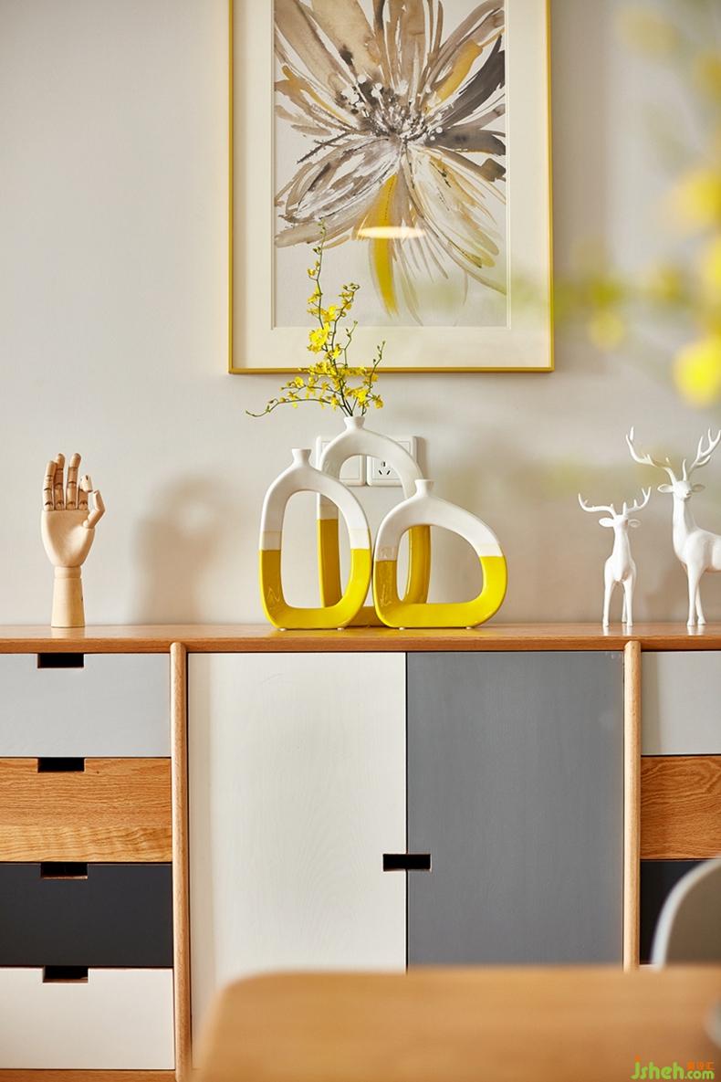 餐廳兩側(cè)設(shè)計(jì)了收納功能強(qiáng)大的邊柜,配以同風(fēng)格的掛畫(huà),一面清新,一面溫潤(rùn),不同的色系調(diào)劑著主人公的生活溫度。