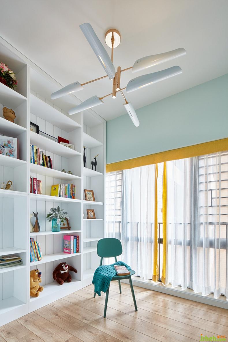 書房是文藝清淺一隅。舒適溫潤的原木地板、形態(tài)優(yōu)雅的吊扇燈、如同圖書館般的開放式書柜;一張靠背椅,一席能透光的窗紗,讀一本書,仿佛就能跨越半個(gè)世紀(jì)去思考、去暢想......