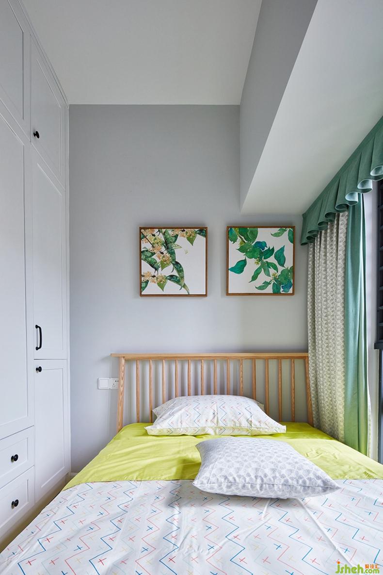 客臥:典型的小戶型極限空間利用,由于空間不大,為了緩沖壓抑感,室內(nèi)設(shè)計(jì)師在整體空間配色上往清新色系走,收納柜則選擇白色系減少存在感,這樣一來整個(gè)空間不僅不顯得狹小,反倒多了“清新神秘一隅”之感。
