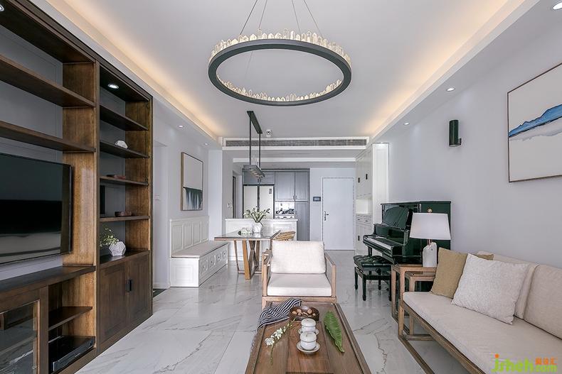 客廳演繹著明澈極簡的生活美學——簡單利落的木質線條勾勒出空間骨架,釋義生活的黑白鋼琴、溫軟沙發(fā)、水墨掛畫與禪意三兩則落成空間肌理。