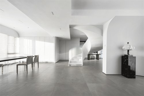 客餐廳之間不設隔斷,開放式的設計手法讓視覺空間無阻礙橫向延伸,也讓各功能空間的通透明亮度更高。
