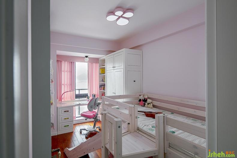 當(dāng)茶白遇上柔粉,就碰撞出了獨(dú)屬小公主的童樂(lè)視界。相比其他功能區(qū)的簡(jiǎn)約感,女兒房承擔(dān)的空間功能更為豐滿——休息區(qū)、學(xué)習(xí)區(qū)與玩樂(lè)區(qū),合理的劃分與設(shè)計(jì)讓三個(gè)區(qū)域既相互獨(dú)立,又有視覺統(tǒng)一性。室內(nèi)設(shè)計(jì)師