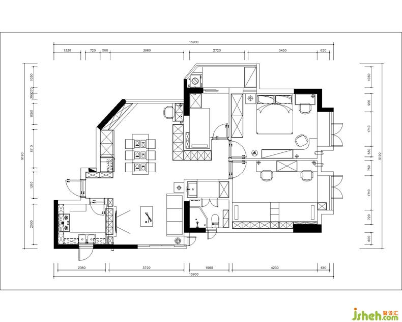 ②戶型缺點:客餐廳通風(fēng)和采光較差??臻g內(nèi)部規(guī)劃不合理,存在較多的過道浪費空間