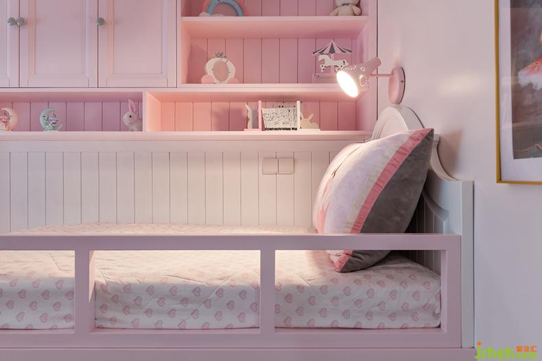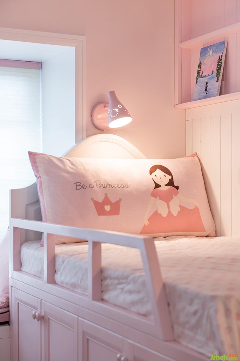 淺粉色的兒童床仿佛翻開了一本童話故事,書寫著夢幻和美麗,夜深入眠時(shí),伴著溫馨的床燈,枕著俏皮的粉色枕頭,一個(gè)美夢便悄悄誕生了!