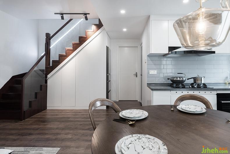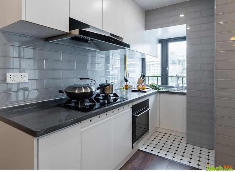 洗碗?yún)^(qū)的地面特意改用小方塊瓷磚鋪貼,與炒菜區(qū)在視覺上和功能上有效進行分區(qū),簡單的設(shè)計元素如同畫龍點睛般的存在。室內(nèi)設(shè)計師