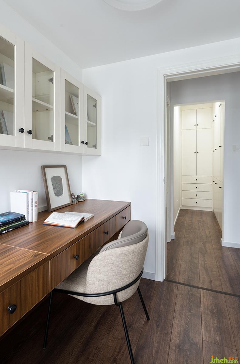書房去蕪存真,減去一切不必要的裝飾,白色書架干凈簡潔,木質(zhì)書桌盡顯穩(wěn)重,還原寧靜的閱讀學習空間。室內(nèi)設(shè)計師