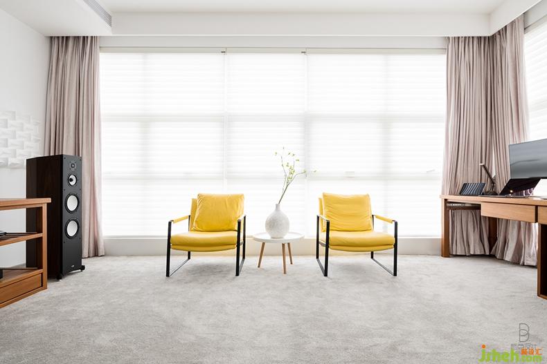 閱讀空間相比客廳更為跳躍、活潑些。木制家具,溫柔的亮黃色椅子相結(jié)合,在克制中流露出浪漫與熱情,透著卡布奇諾的香醇,在晴日陽(yáng)光的午后,感知音樂(lè)、書籍。別墅裝修設(shè)計(jì)
