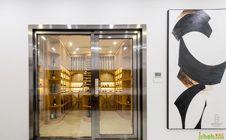 極具戲劇張力的黑金色裝飾畫形式感十足。來到紅酒堆砌的一角,讓人聯(lián)想到底特律的爵士時(shí)代,高雅浪漫,恰似浮生偷閑的幸福感、奢華感。別墅裝修設(shè)計(jì)