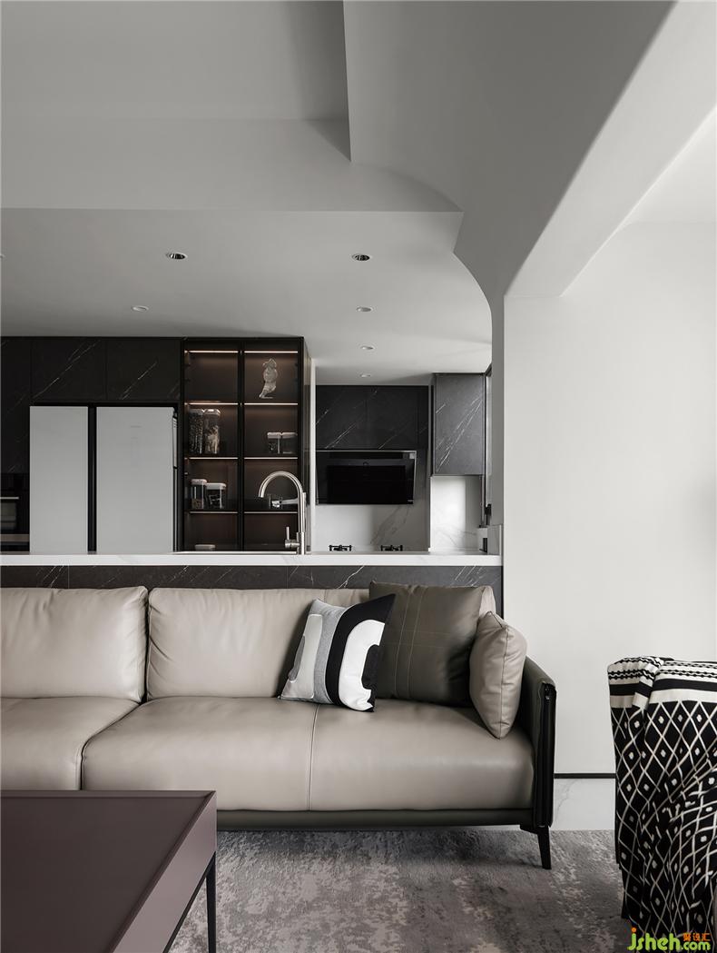 因為基于現(xiàn)代敞朗的格局形態(tài),軟裝的介入更偏向居者本身的性格和心理感受,整體簡約舒適,色彩也更顯俊酷,細(xì)節(jié)處則是側(cè)重時尚、個性,點綴的幾筆橙色,已足以溫暖