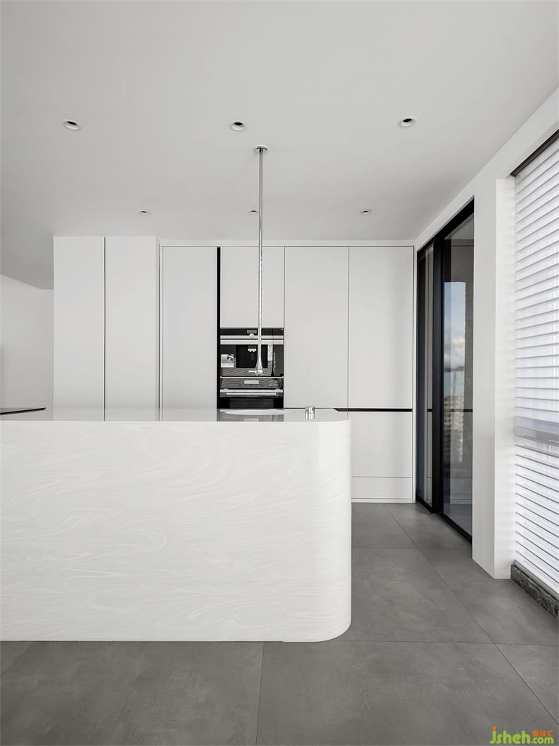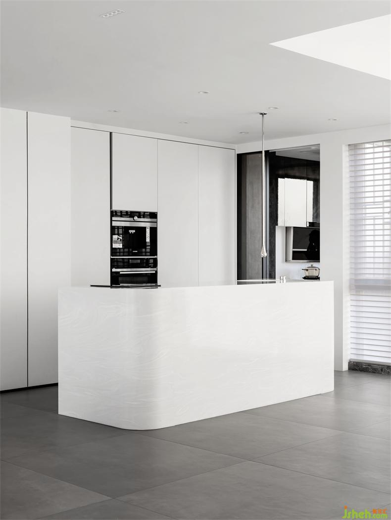 曲直有致,勾勒層次,幻入夢(mèng)境一般,仿佛不食人間煙火,但恰恰相反,人間煙火是島臺(tái)與餐廳最重要的,當(dāng)開(kāi)始有人忙碌、當(dāng)家人/朋友聚坐在一起,美味佳肴上桌,其他的則是最好的調(diào)味劑,薈出歲月里的千滋百味。
