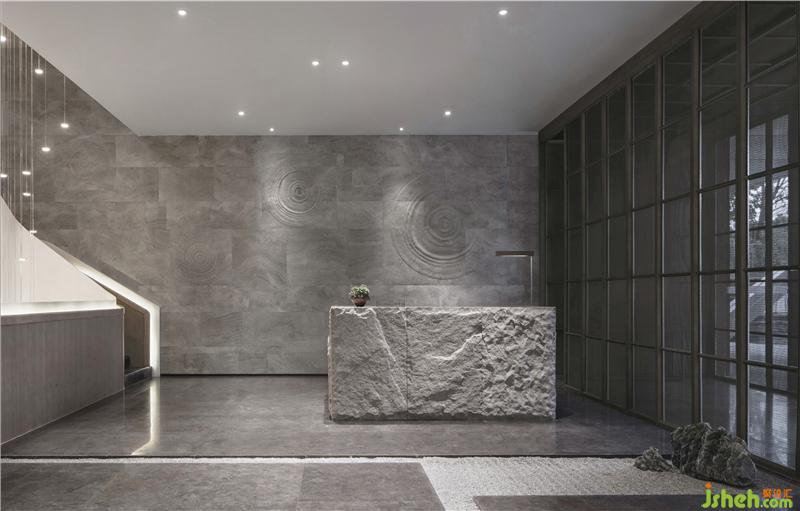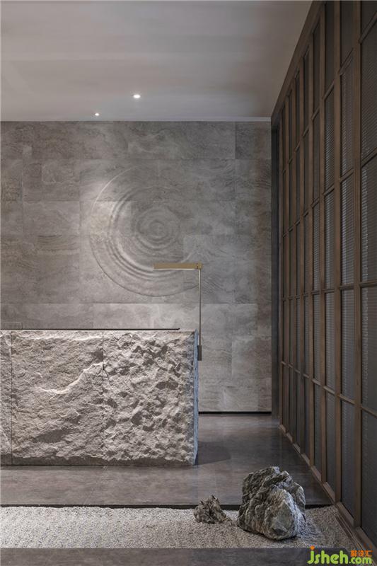 The collision of hard stone and gentle water drops on the wall reflects the dialectical and inclusive Oriental philosophy of life.