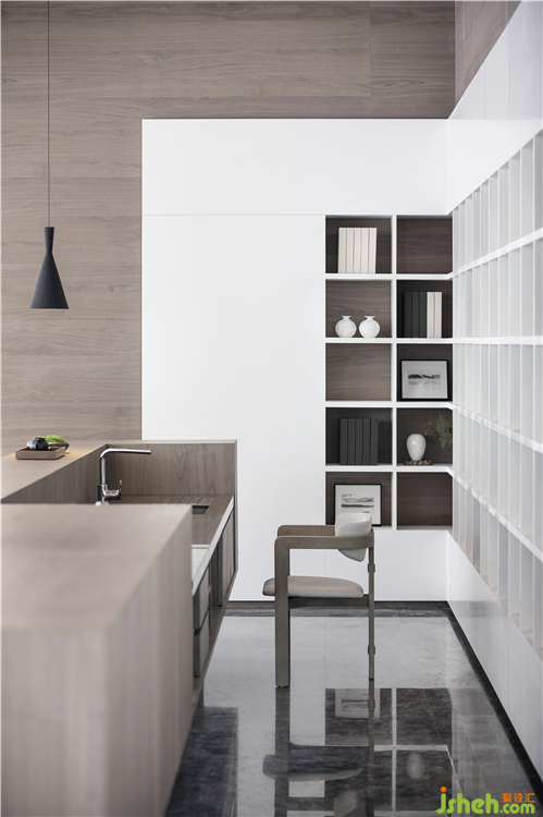 細(xì)節(jié)的詮釋,是恰到好處的精致。詩書、墨壺、畫框靜默于書架盒子,文雅之風(fēng)在此蕩漾。