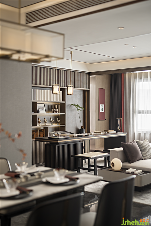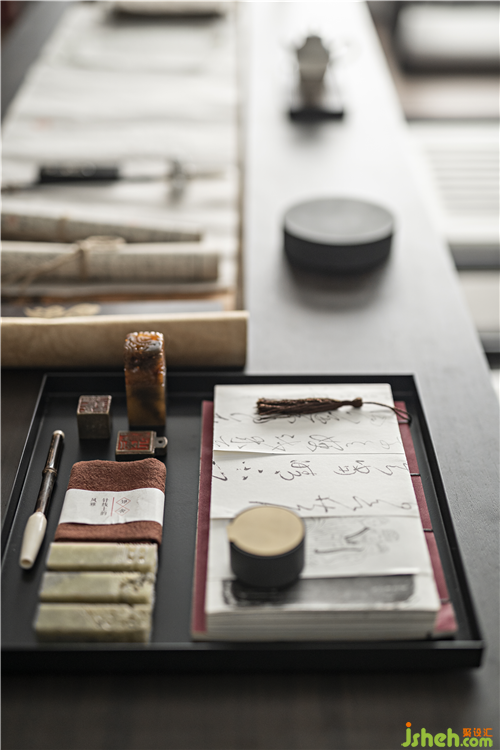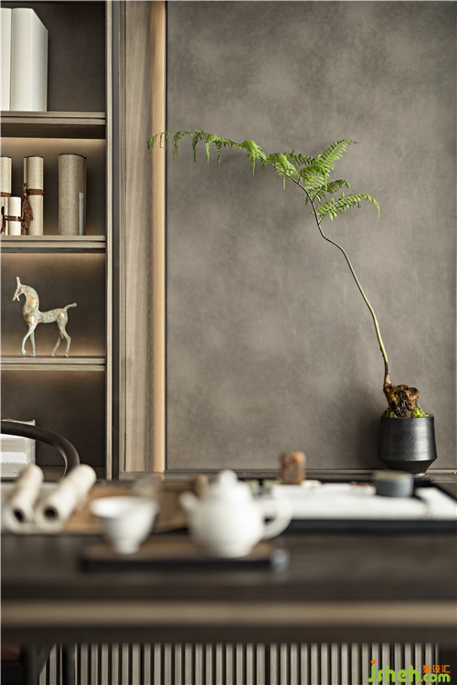 The primitive scrolls, the four treasures of the study and the refined asparagus create a comfortable life scene like "bamboo shadow through window shaking on the book table", so that the residents can relax in the exclusive time surrounded by books and ink.