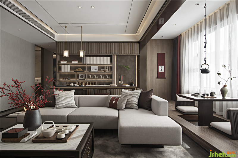 Inspired by "living in the mountains",through the simple and introverted design technique, The design make the old context and new elements co-exist to explore a kind of humanistic and comfortable new Chinese life belonging to the contemporary people.