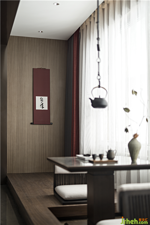 靜謐的灰、素簡的白、古樸的紅,凝練出清朗簡寧的空間氣韻,仿佛提醒人們褪散生活的浮華,回歸內(nèi)心的優(yōu)雅和詩意。