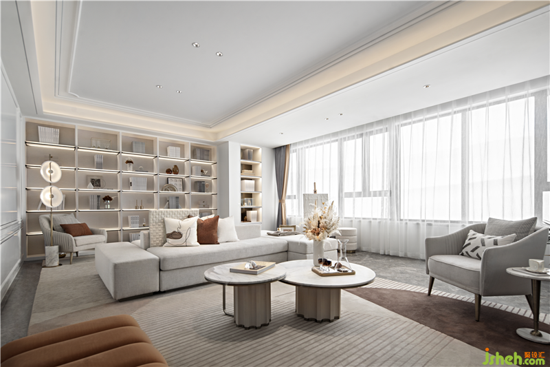 It advocates diversified interactive blend, with the sofa as the boundary, integrating reading and leisure into home life in order to create an open home dynamic line.