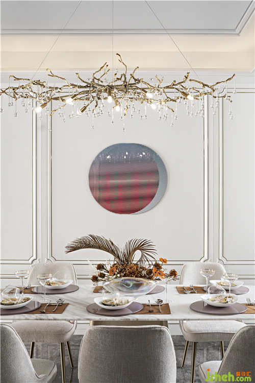時(shí)尚感性的亮片交織,解開(kāi)空間與花香的情愫,表達(dá)居者對(duì)自然和花朵熱愛(ài)的肯定,浪漫、典雅、迷人。