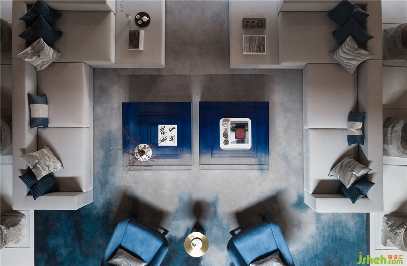 With leisurely ink fragrance and blue tone, here the design intends to build a pure, fresh and refined field in harmony with the scene.