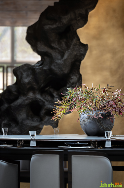 一墻拙石、墨陶竹枝、一盞茶杯,拙樸的傳統(tǒng)美感于細(xì)節(jié)中得到當(dāng)代美學(xué)的傳承,文人詩(shī)意的浪漫躍然而出。