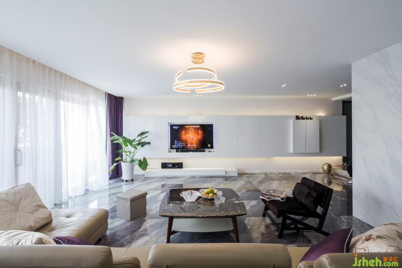 本案設(shè)計(jì)公司運(yùn)用白色作為主色調(diào),把戶型采光率更大化,讓整個(gè)空間更加明亮。軟裝的配色上選用跳躍性的重色調(diào)作為點(diǎn)綴,增加空間的靈氣,使整個(gè)空間清純素雅